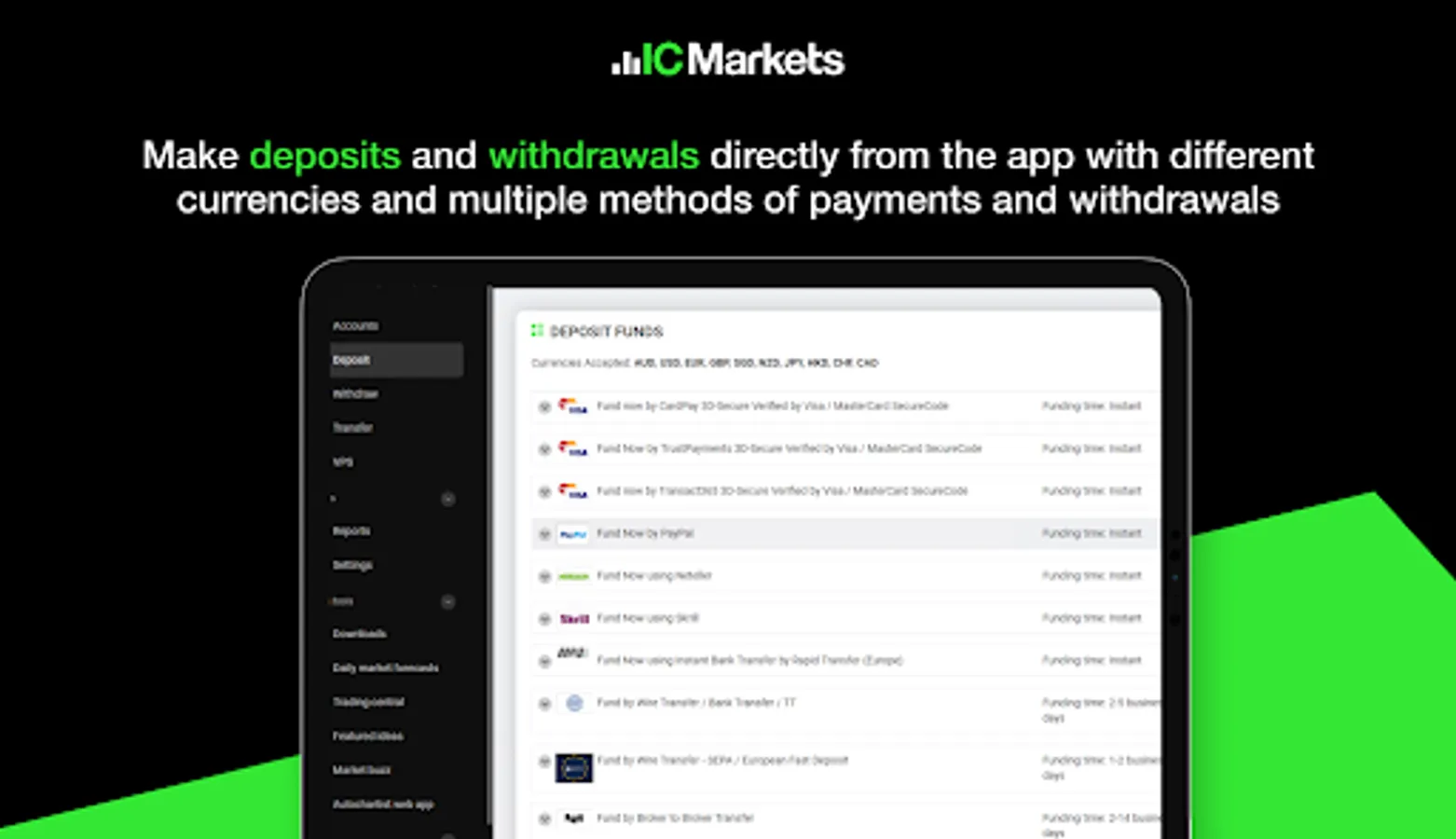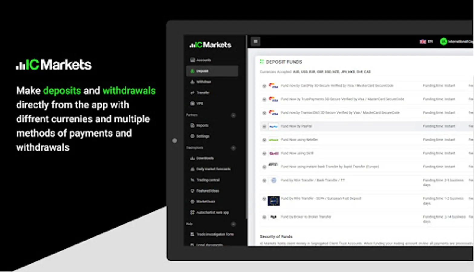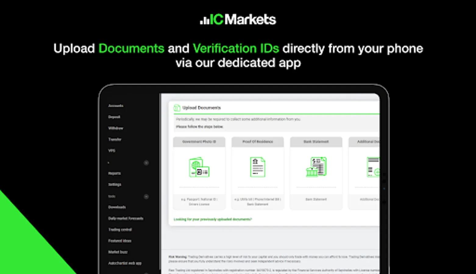 The IC Markets app enables you to open an account, upload documents, manage your funds by making deposits and withdrawals and access a feature-packed trading platform. Monitor your account with our intuitive user interface suitable traders anytime, anywhere.