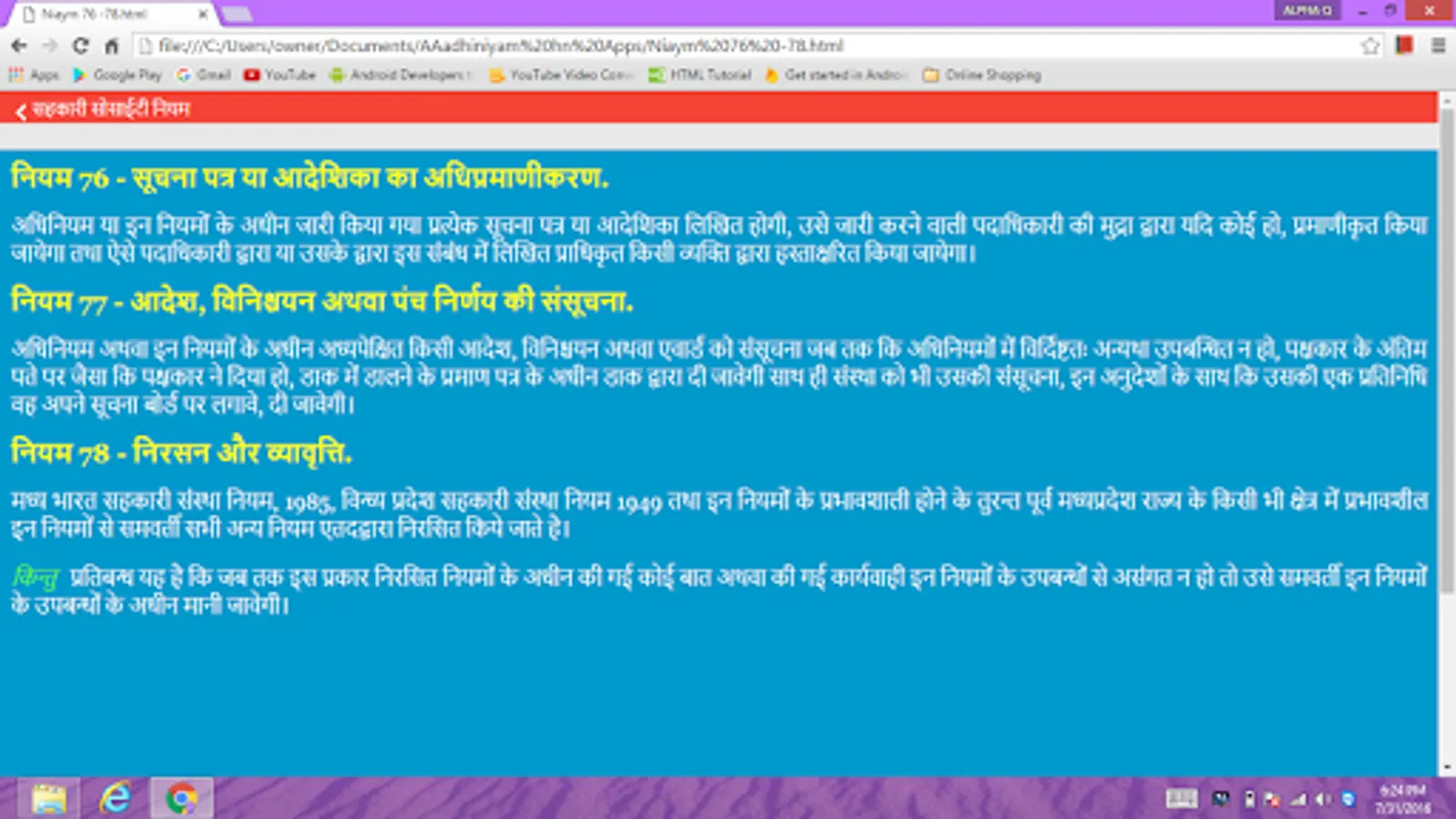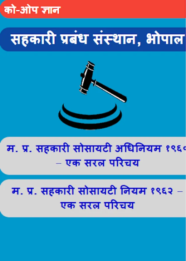 This mobile app Madhya Pradesh Cooperative Societies Law of 1962 is presented in simple language to date |