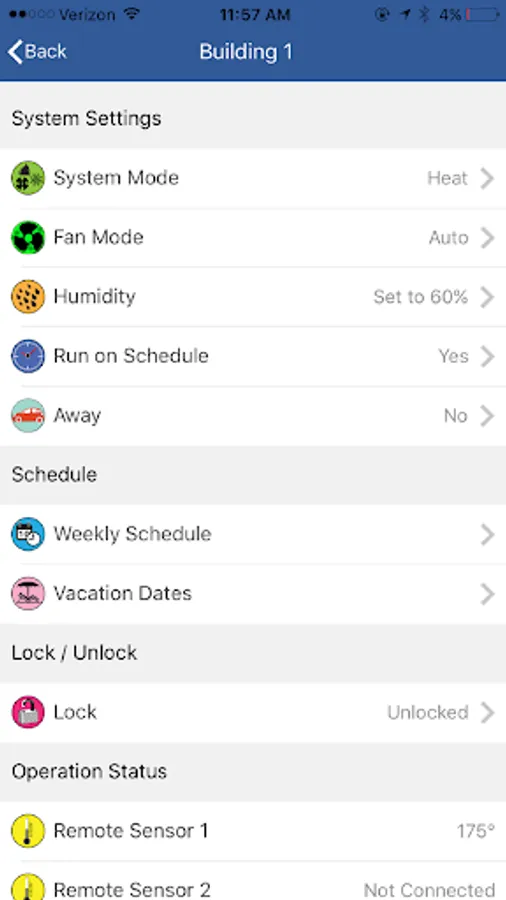 Set weekly schedule. Set annual vacation / close dates for schools and businesses.Receive an alert when thermostat or HVAC equipment is not running right.
