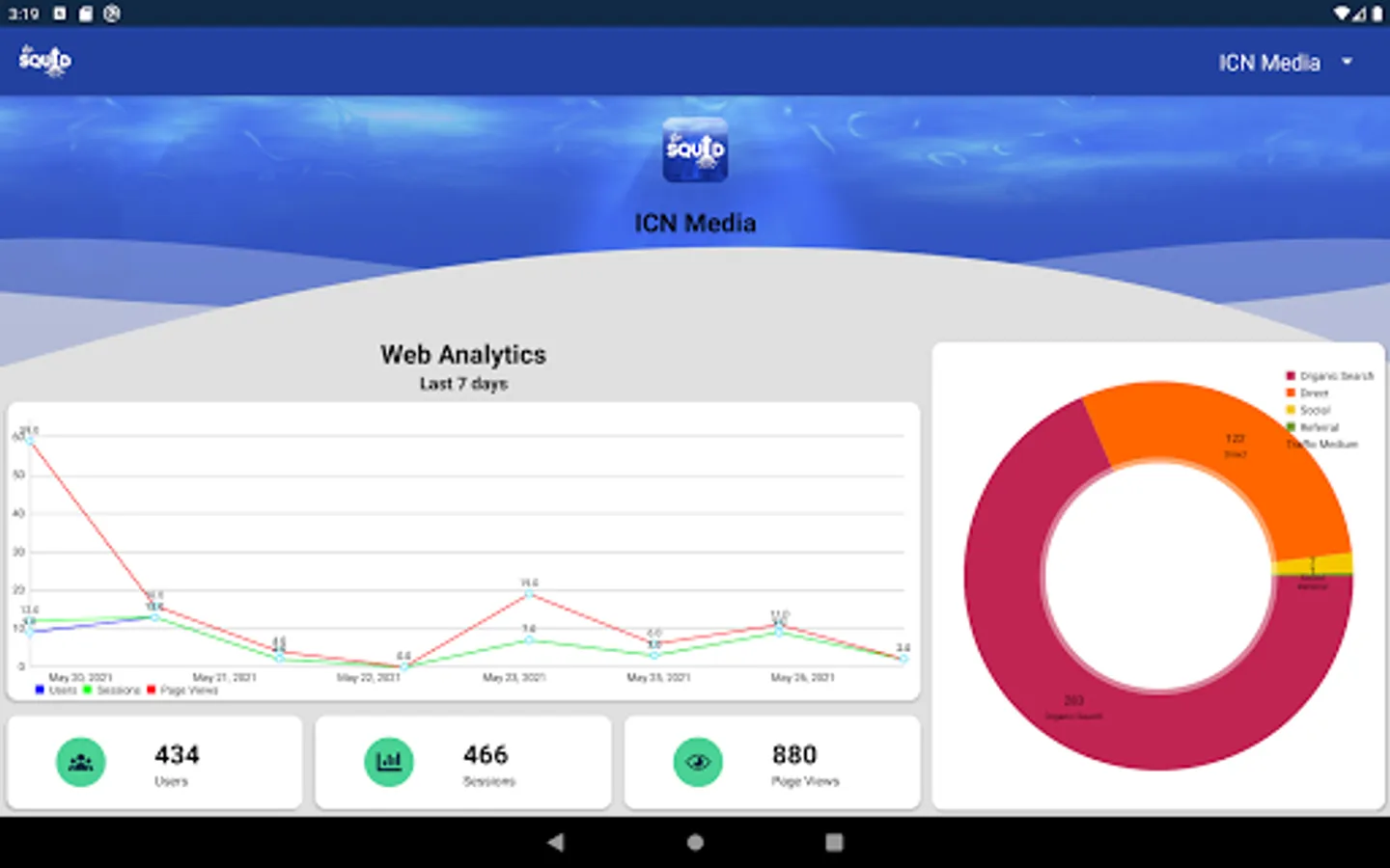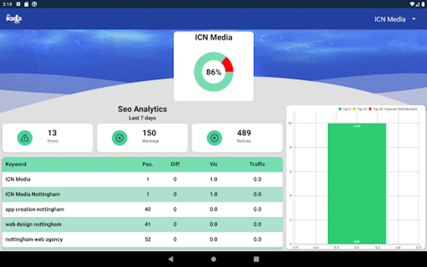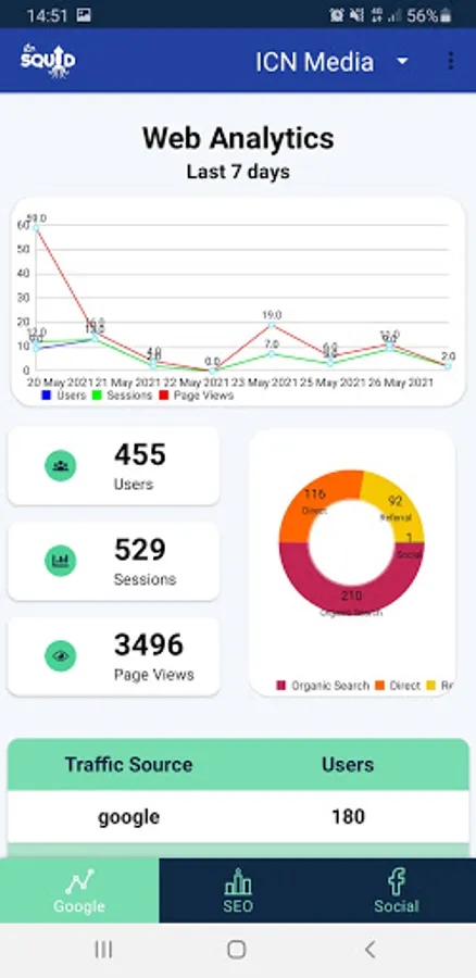 From just one app, you are able to see up to date information from Google Analytics, Facebook, Twitter, Instagram, SEO data and Flurry App Analytics in a variety of easy to view perspectives, from an overall headline picture, to specialist, more in depth assessments for areas like social and SEO performance.