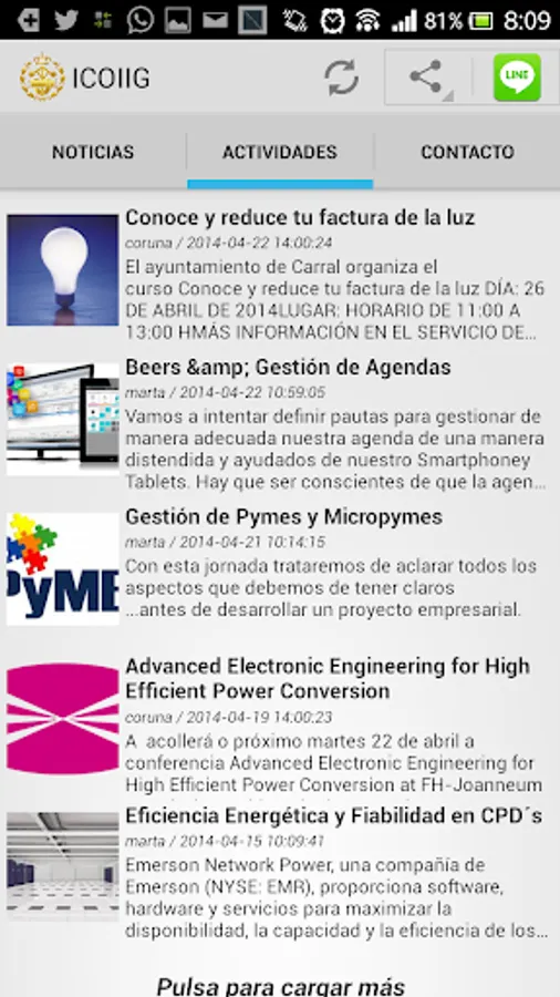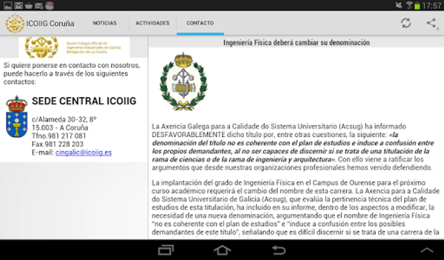 App to keep informed of the activities of Industrial Engineers of La Coruña