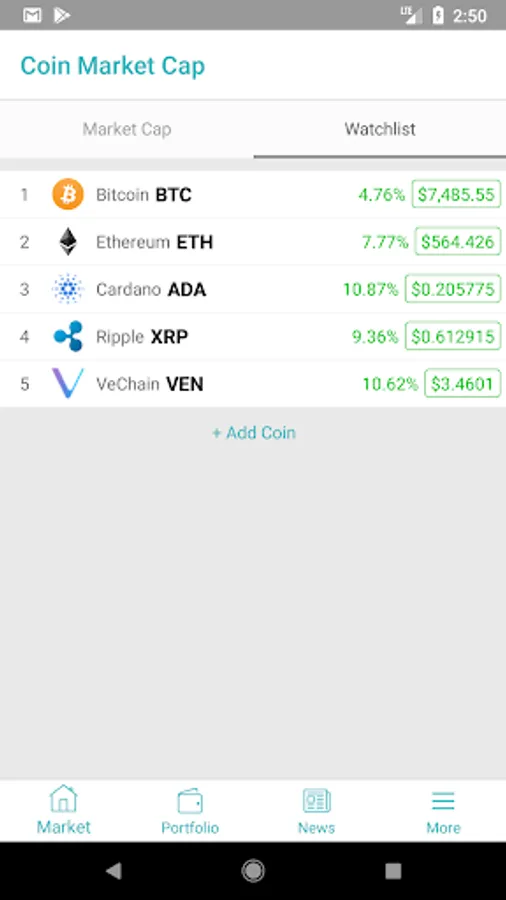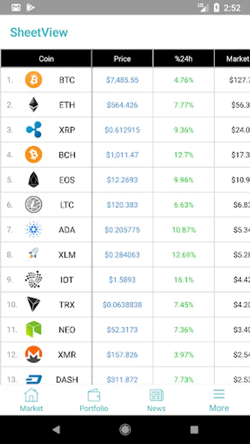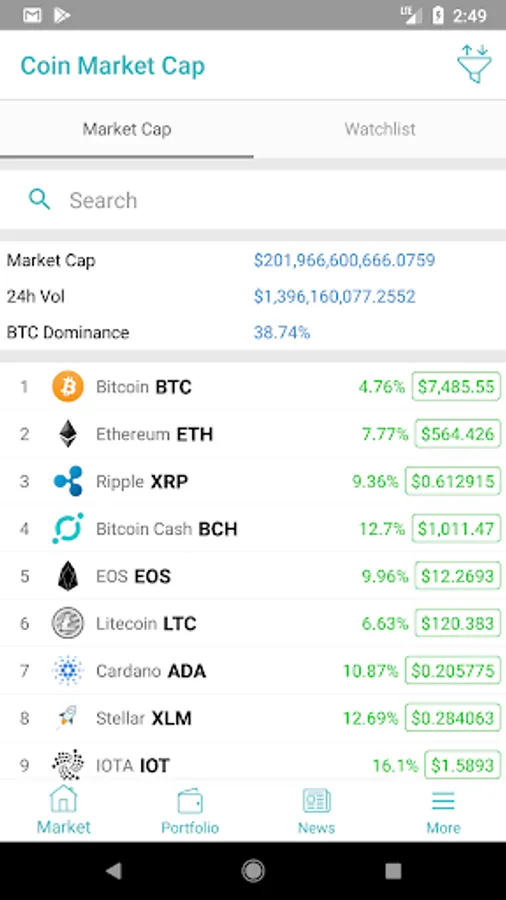 Easily spot market trends with advanced graphing and data analysis so you can act quickly and invest in the most profitable cryptocurrencies. Shows trade volume, rate comparisons, market cap, market supply, price graphs and change percentages.