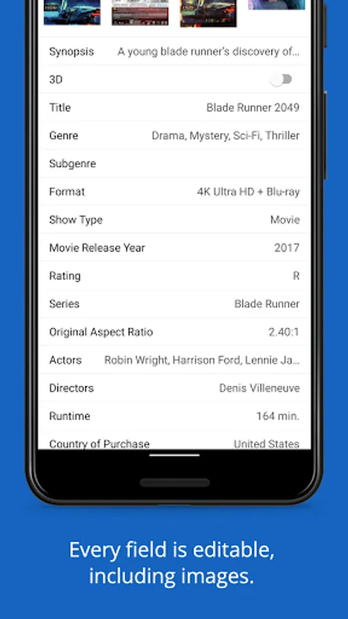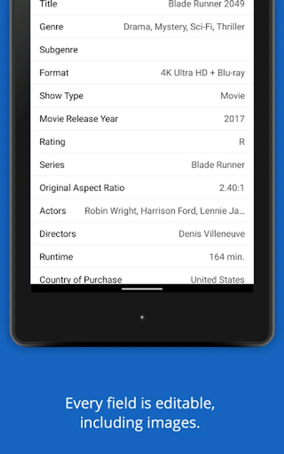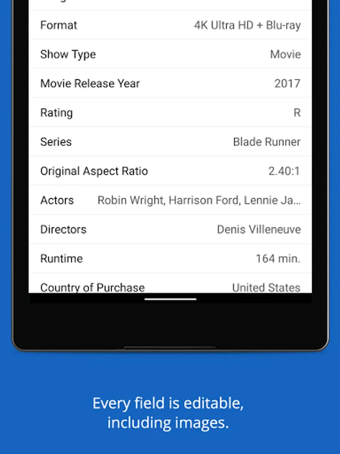 This app is a completely new collecting experience written from the ground up with Kotlin. It has full Android 14 support for the latest devices from Samsung, Google, and more. Our app was created with a cloud database backend designed specifically to allow each movie to be stored with its own individual attributes.