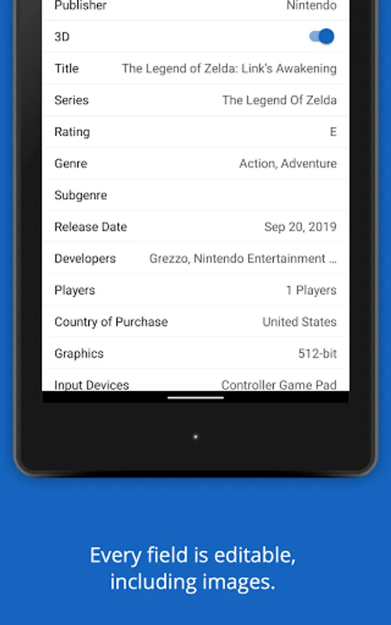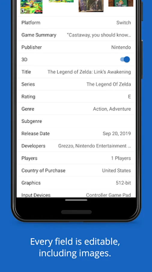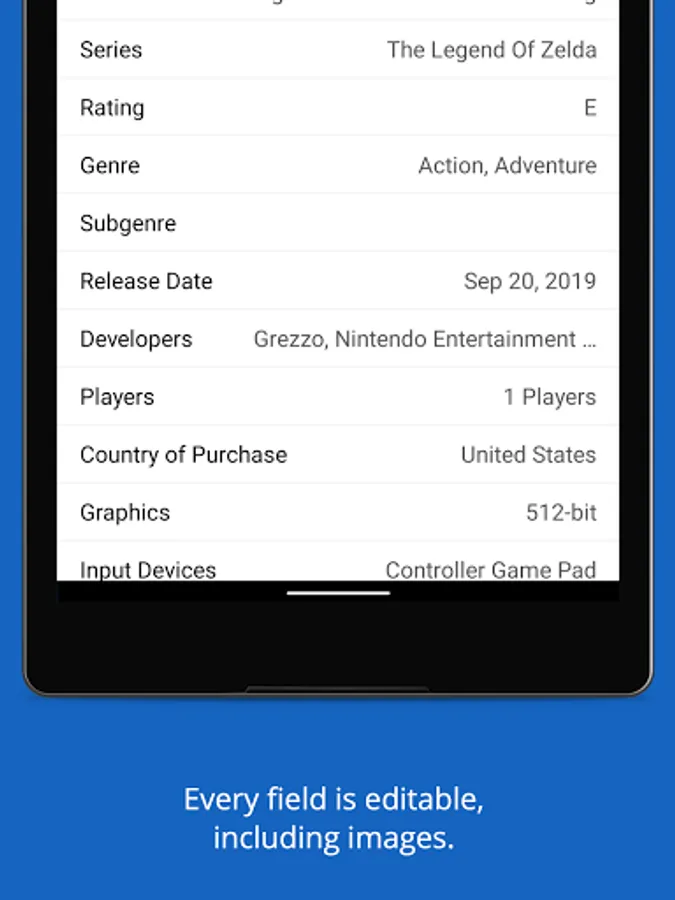 This app is a completely new collecting experience written from the ground up with Kotlin. It has full Android 14 support for the latest devices from Samsung, Google, and more. Our app was created with a cloud database backend designed specifically to allow each video game to be stored with its own individual attributes.