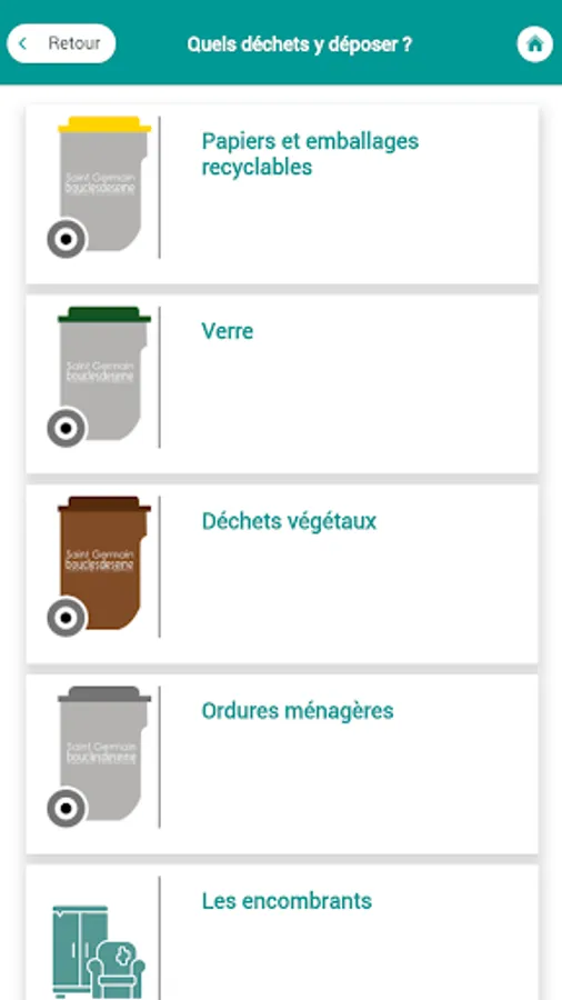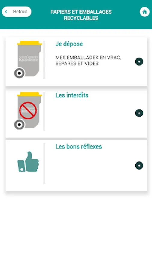 BOUCLE_TRI The application also includes a small interactive guide on the instructions of the sort. If in doubt, you can check the flow corresponding to waste.