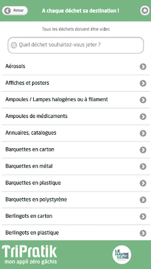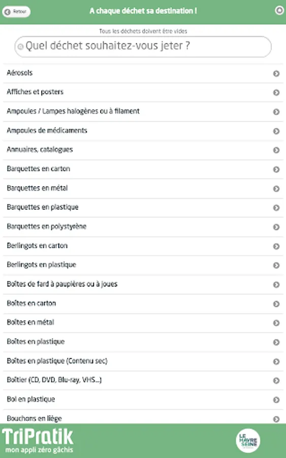 The TriPratik application has an interactive guide on sorting guidelines: if in doubt, you can check the flow corresponding to a waste.