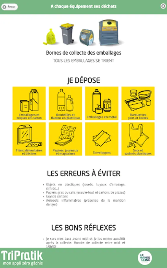 The community of communes Le Havre Seine Métropole is proud to offer the TriPratik application to its inhabitants: useful for learning about waste collection but also for remembering good sorting practices.