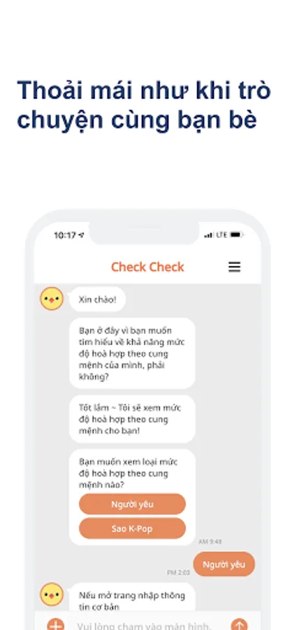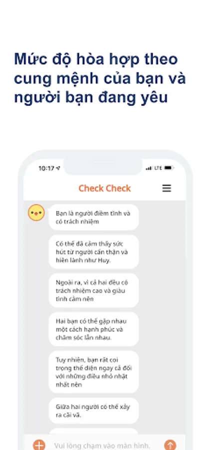 Just chat with Check Check and see the harmony level of your destiny and your lover.