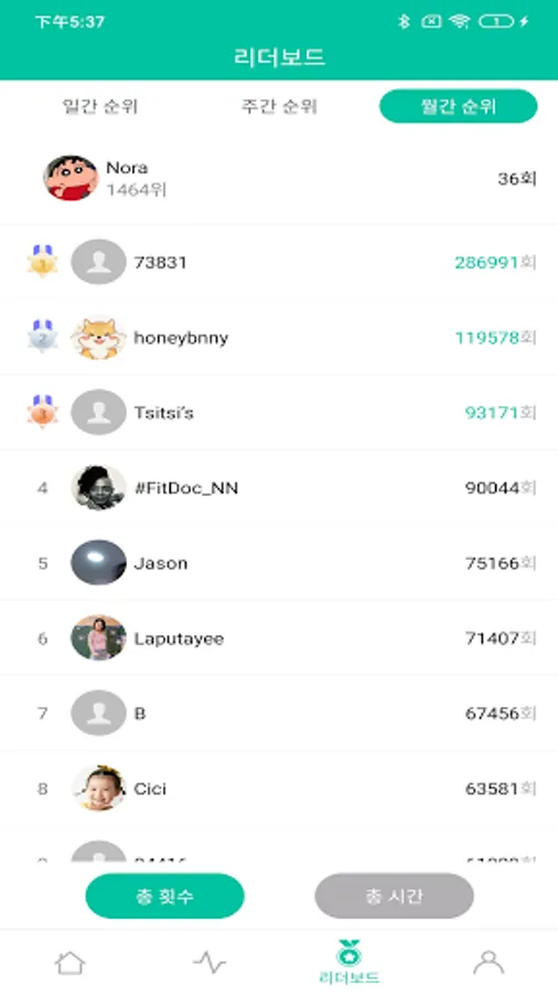 -전 세계 점핏 사용자들과 본인의 일간/주간/월간 순위를 확인하고 1등인하고 1등인을본본을 본인