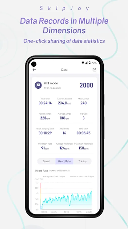●6 modes are optional: Counting jump, Timing jump, Free jump, HIIT jump, Course jump, AI jump, to meet your different training needs;