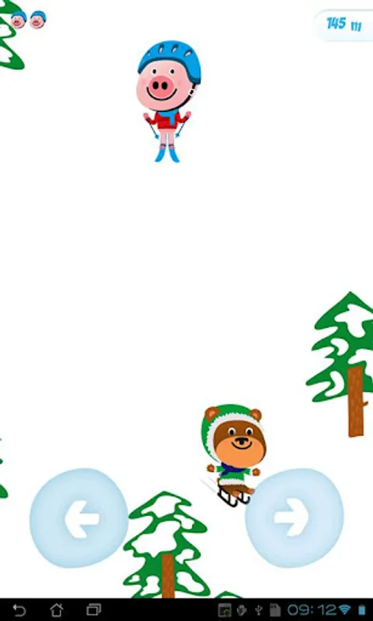 The challenge is to prevent Pigy piggy skiing crashed into a tree, or collided with his friends.