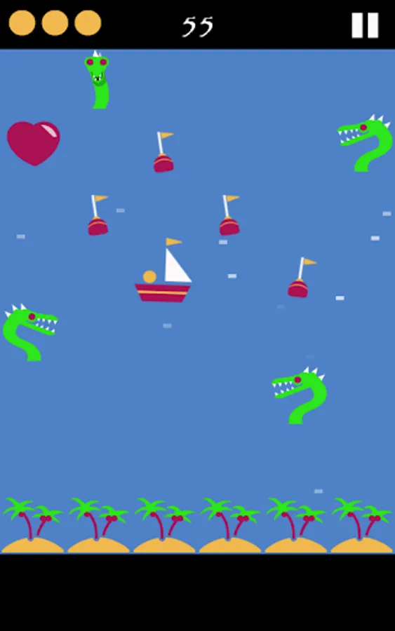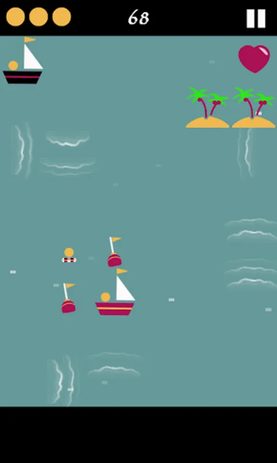 In this casual game, you have to send the little ship on screen to wherever the heart is. To complicate things you'll have to avoid rocks, other boats, strong waves, whirlwinds and even sea monsters!