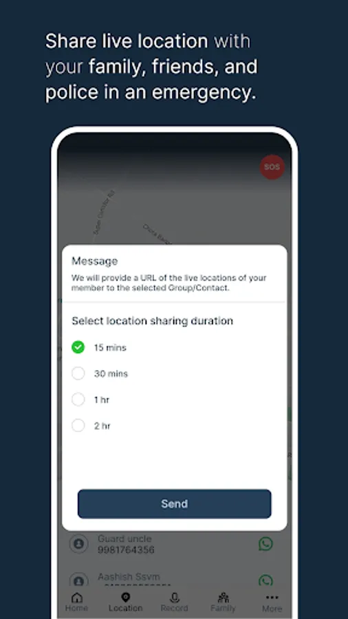 With just one tap you can hear real time background audio of select family members in the event of an emergency