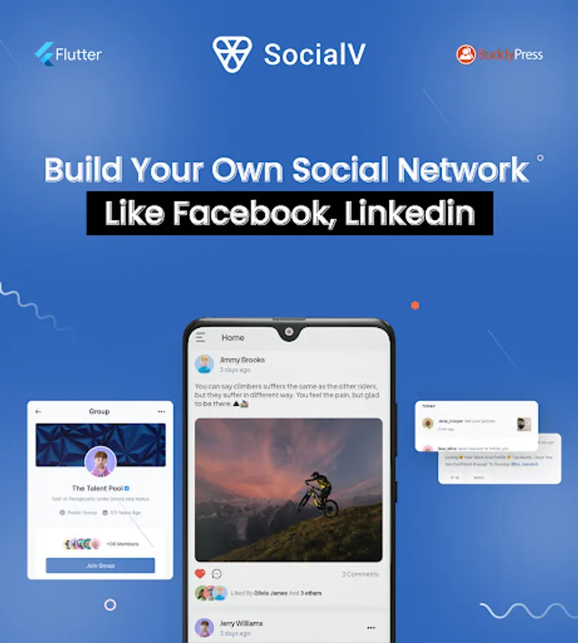 If you're looking to create a Facebook-like flutter social media app or an Instagram clone, look no further: SocialV has everything you need to get started. With powerful features like photo and video sharing, commenting, and liking, SocialV - buddypress mobile app for social network will let you build the social network of your dreams. Plus, our easy-to-use interface makes creating an app a breeze. So why wait? Get started today!