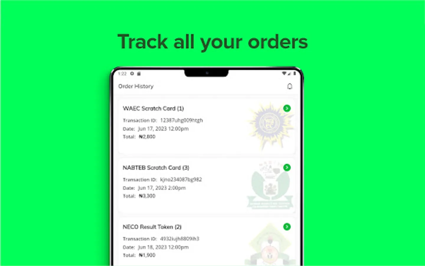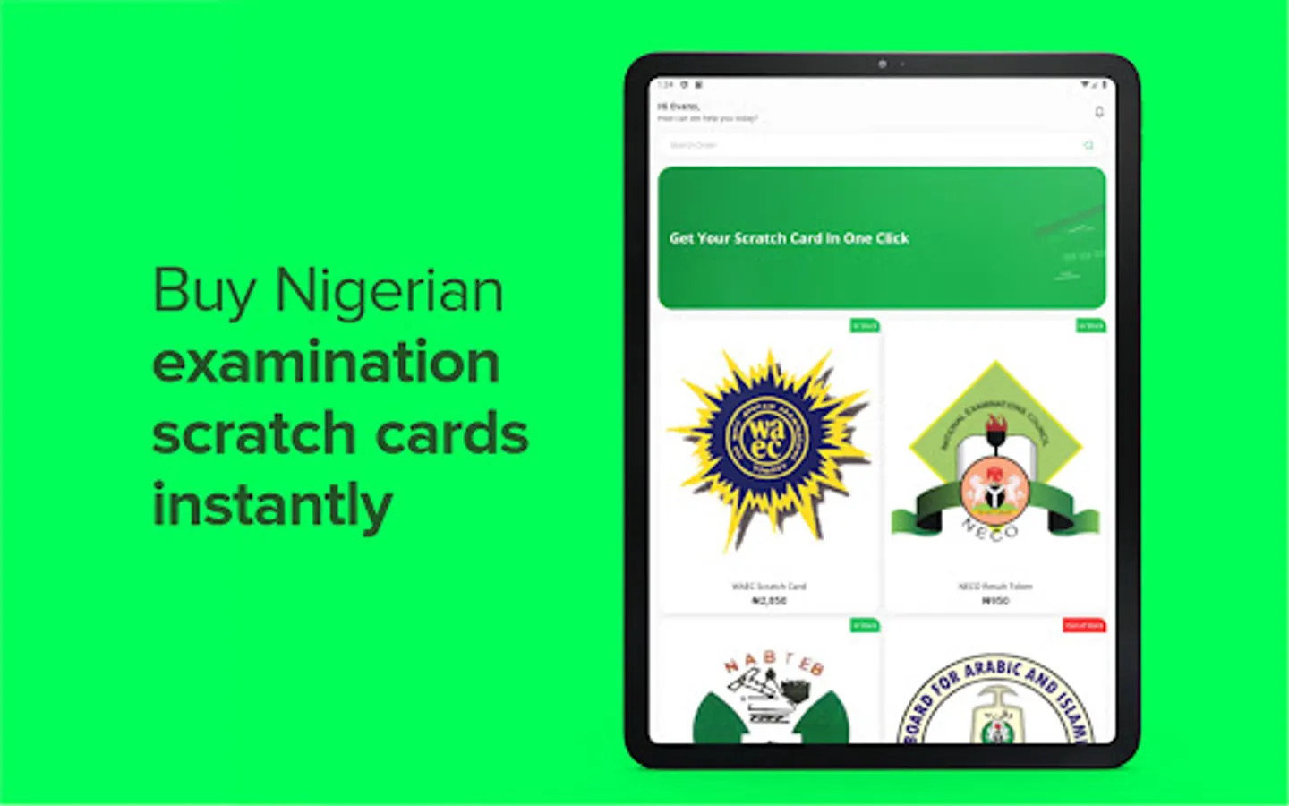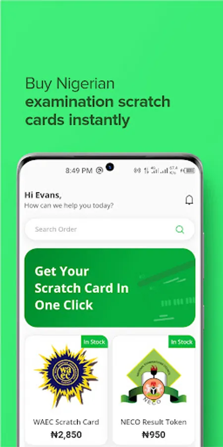 With the BuyCard App you can now purchase all Nigerian Examinaion Scratch Cards Instantly.