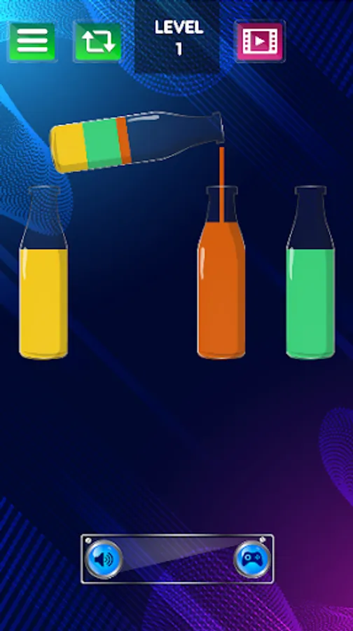 • Tap any glass bottle to pour water to another bottle to make same color.