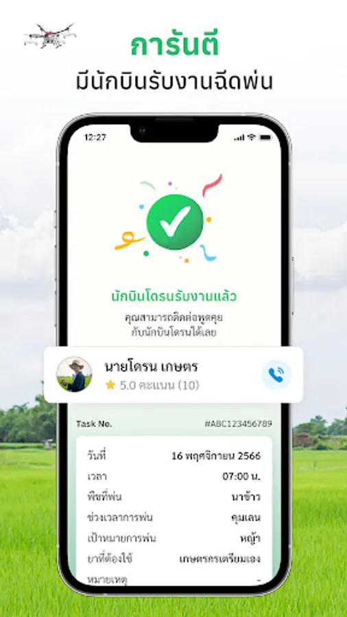 Waiting for the drone pilot to accept the job And can contact the drone pilot straight away Or contact the staff if you need help.