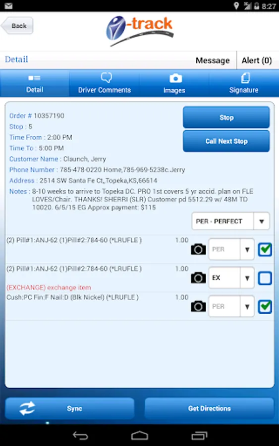 Features include real time updates on delivery, delivery errors, location tracking via GPS coordinates, delayed in traffic, held up at a location, customer signature on delivery, taking pictures of damaged deliveries or damage to property by driver while delivering.