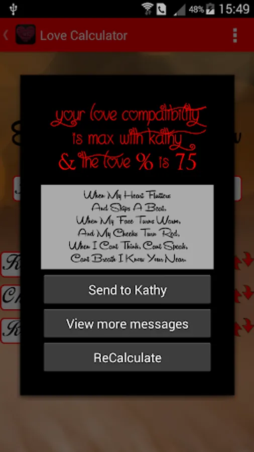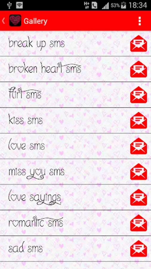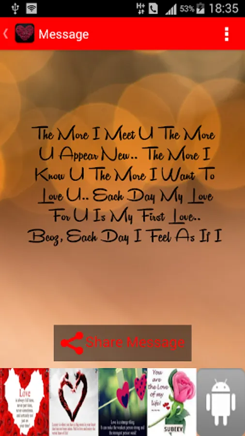* App also gives you a message pool of various categories, from which you can choose best messages and send to your partner.