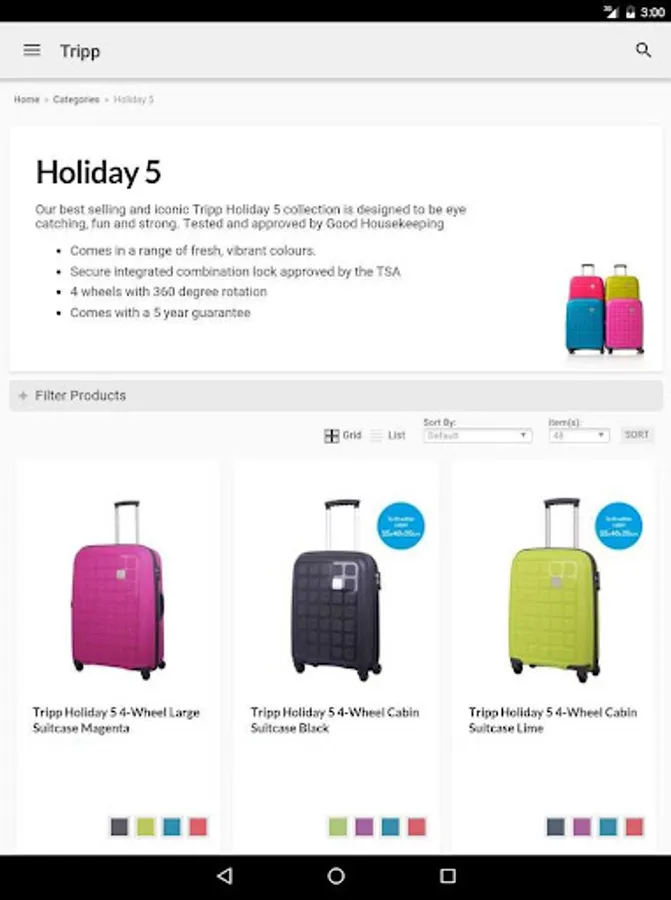 Download the free Tripp luggage app to shop the full Tripp range on your mobile device wherever you are.