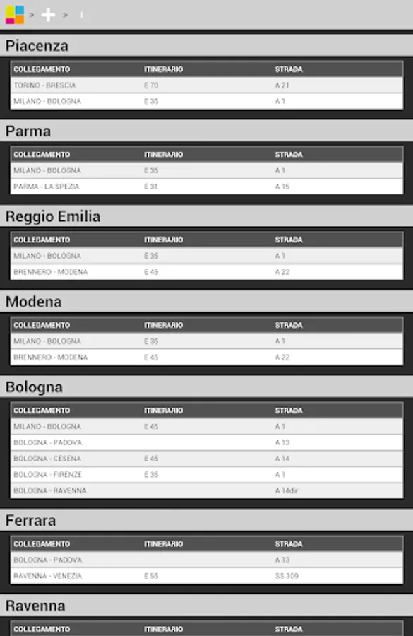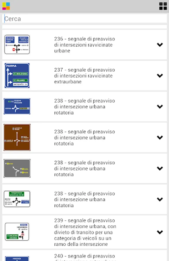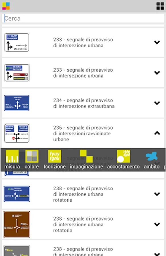 The App contains the "Guidelines for the design of the plans of road signs" of Emilia-Romagna.