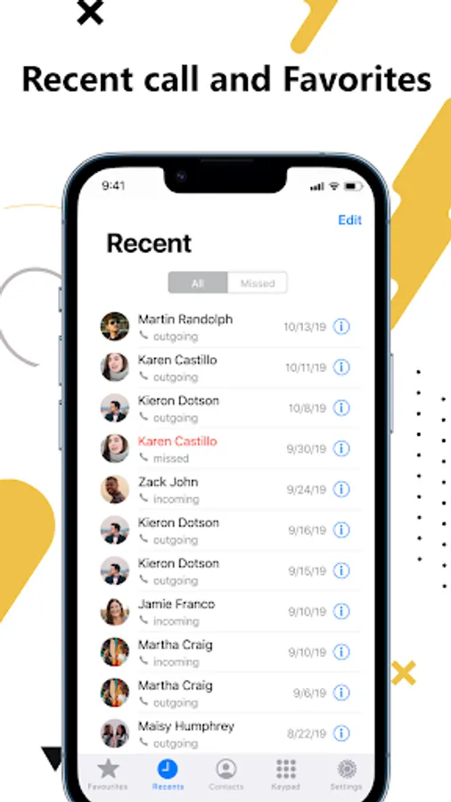 Easy to use and manage contacts OS13, Phone, Contacts Dialer - Contacts and Calls provide you a very convenient way to quickly access your recent contact calls, contacts, favorites, on favorites and contacts call history.