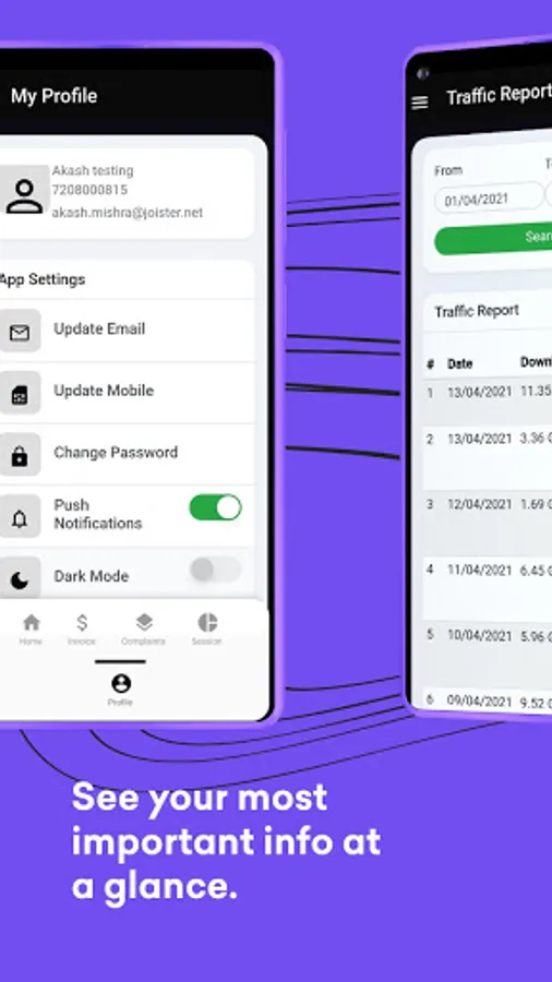 MyJoister users can use this app for adding complaints,online payments, view traffic report .Users can login and they can manage their own packages, adding complaints, enquiry, invoices.