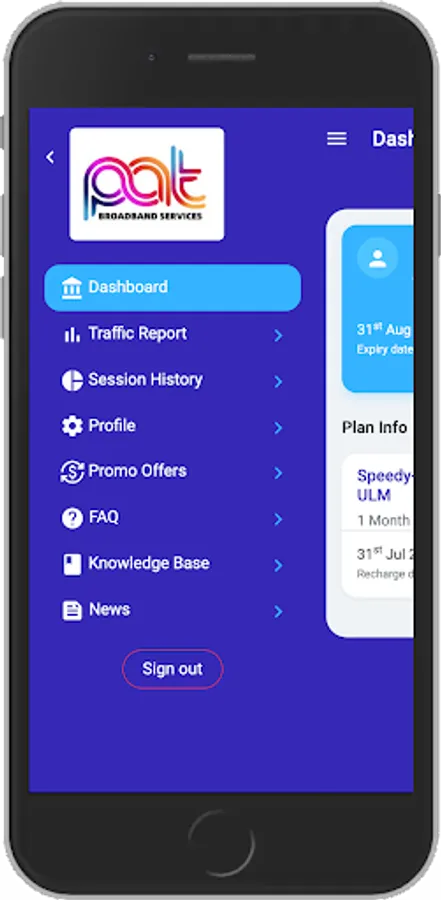 PAT BROADBAND provides features like Account management, Data Usage, Invoice Payment, Traffic Report, etc.