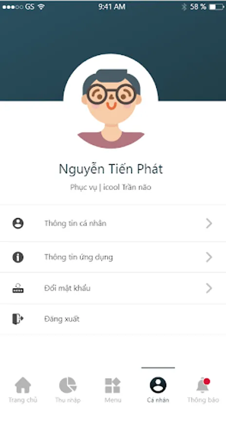 ICOOL STAFF App is an application that allows ICOOL's employees to view and update their profile, avatar, password, view application information, application version, pushed notification, tips (personal income sheet according to bonuses) revenue), user revenue by day (yesterday, today, this week, this month), branch revenue, guest list, total bill, average bill by day (day, week, month). ..