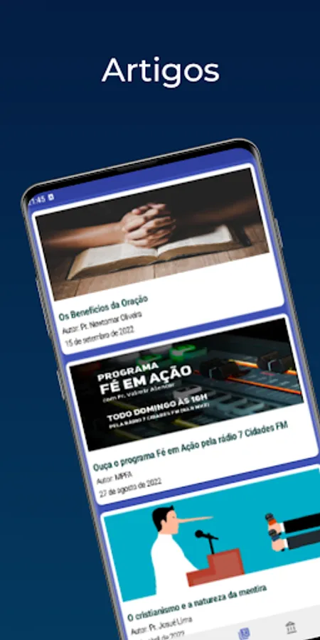 This is the official Faith in Action Pentecostal Ministry app. Here you have direct access to various content and publications from our church, such as: Bible studies from the Unified EBD, posts on the MPFA blog, Faith in Action program, prayer requests, Biblical Diet podcast, doctrines and many others.
