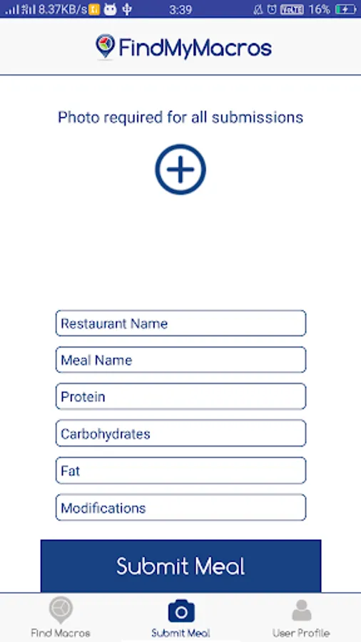 FindMyMacros is the mobile app that finds nearby meals based on macronutrients (protein, carbohydrates, and fat)! Input macronutrient ranges you are looking for and the app presents all restaurants which offer meals that fit that criteria!