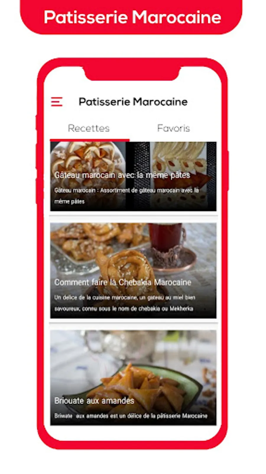 Find in this Moroccan pastry application, the classics of Moroccan pastry made from almond paste: gazelle horns, briouate, Kaâk de Rabat, Mhencha ...