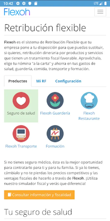 Thanks to the Flexoh App you can fully manage your Flexible Remuneration plan: consulting, contracting and editing the products and services enabled by your company. In addition, you can also: