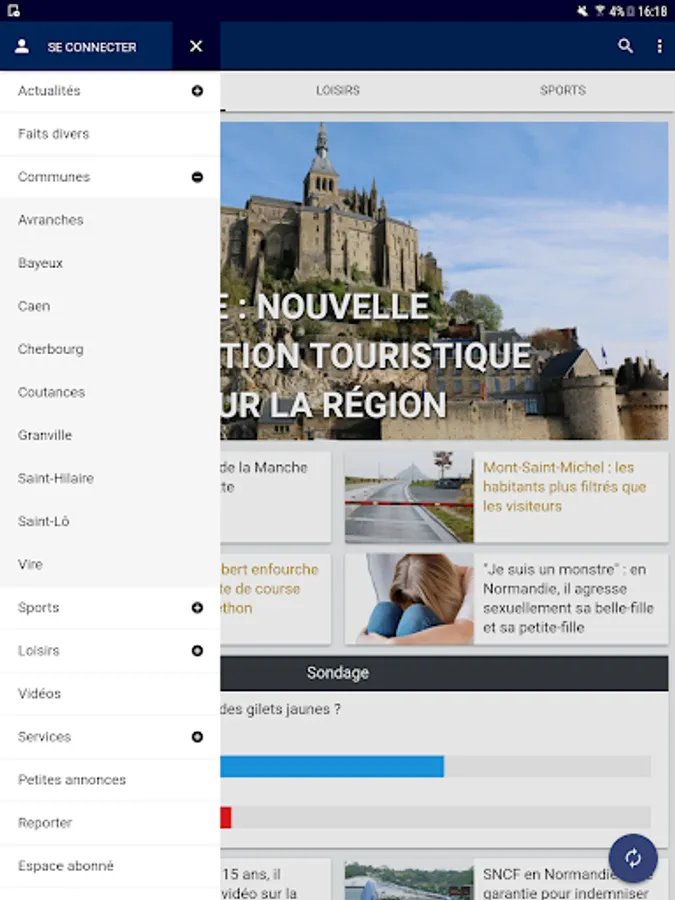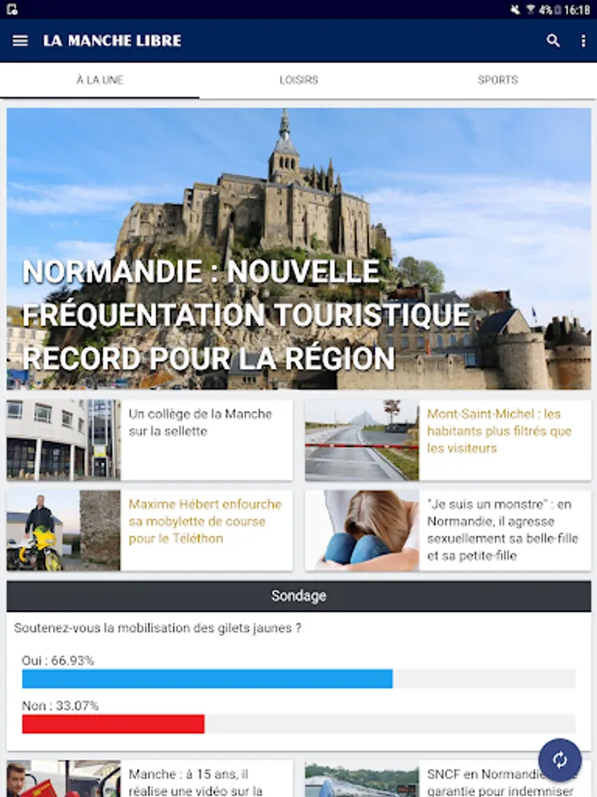 Discover the application of La Manche Libre, the first regional weekly of France, you will find the news in the Normandy region but also all the good plans to go out in the region.
