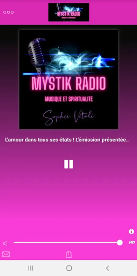 Mystik Radio created by Sophie Vitali medium, parapsychologist, press columnist, author and radio host. It offers you talk shows on the themes of parapsychology, well-being and personal development. Participate and share your experiences live! Meet love? Myth or reality ? Paranormal phenomena! What is mediumship? Love in all its forms! Animalia, Karmic Bonds and many other topics are discussed weekly.