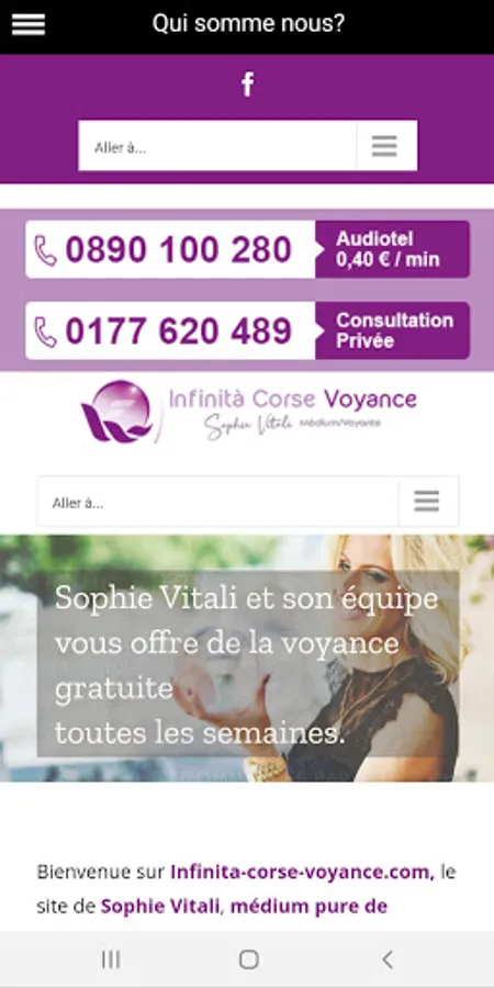 Every Tuesday evening, Sophie Vitali, medium and psychic recognized by the press and consultants, offers you to test the mediums and psychics on her site live and free of charge: www.infinita-corse-voyance.com!