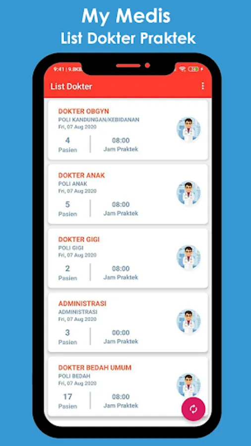 The my Medis application can also function as a patient list for poly nurses and a list of doctors currently on duty