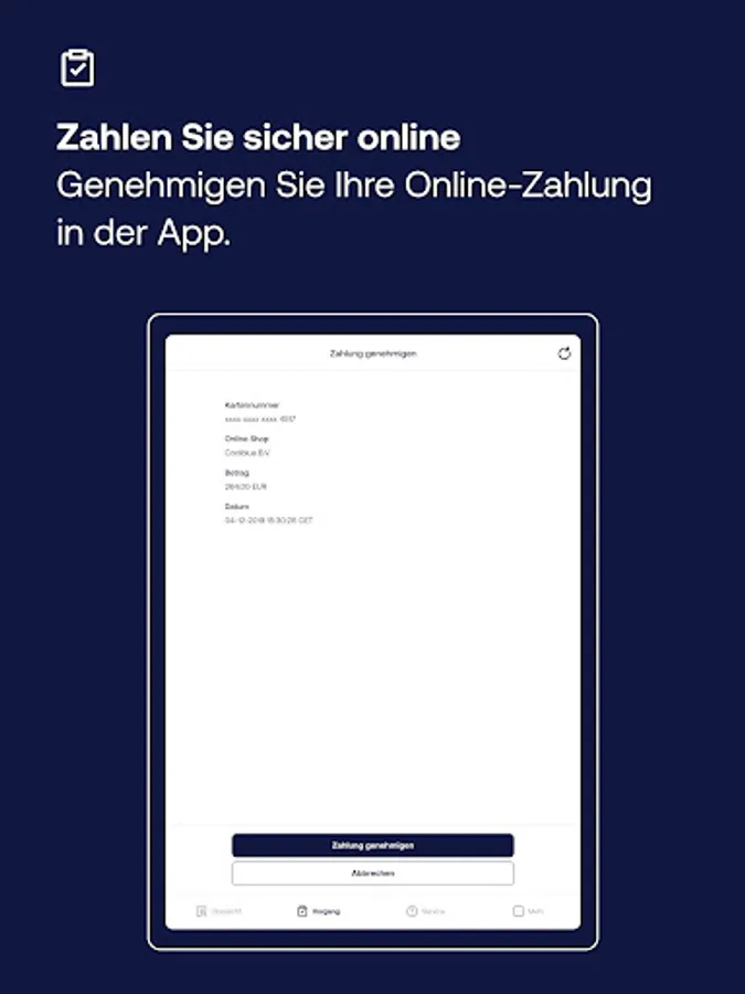 Shopping online? The app allows you to approve online payments quickly and securely. Confirm the payment order in the app with your access code or fingerprint.