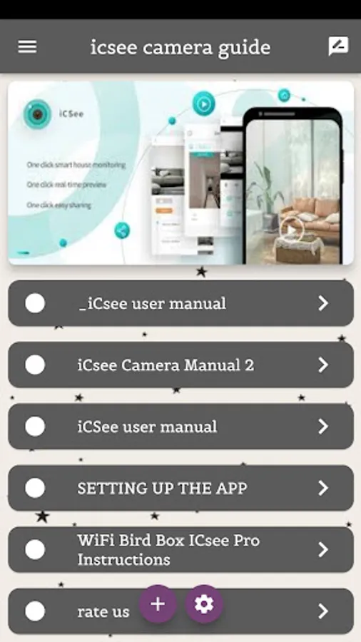 Acesee icsee indoor home security camera manual No professional installation is required. icsee camera manual and app is easy to install, easy to control, and easy to maintain. Compatible with 2.4GHz WiFi (Does not support 5GHz WiFi). Download the app from the App Store or Google Play. Via Acesee App / v380 Pro, start and adjust detection sensitivity and area, set alarm schedule.