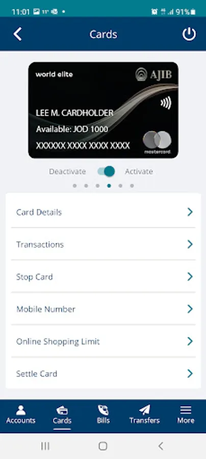 • Instantly activate / deactivate your credit card