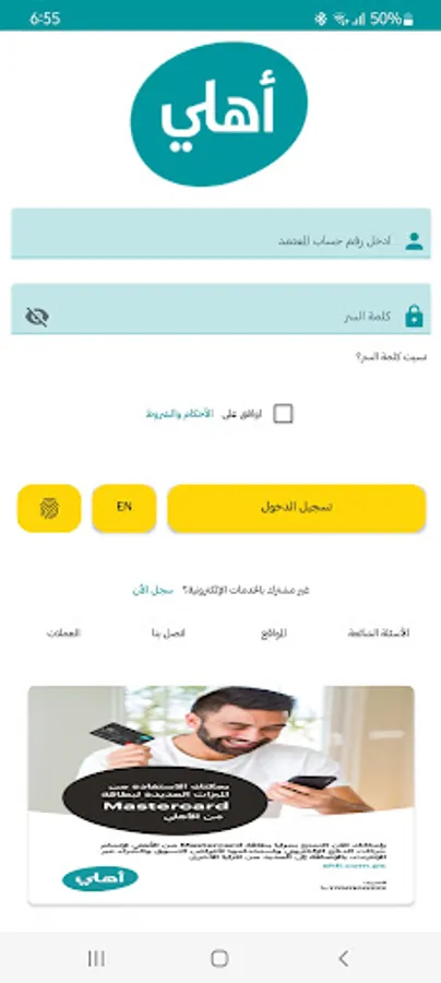In this context, the Bank has developed a mobile banking system to facilitate the banking services of its customers by providing a variety of banking services that assist customers with ease. The system provides services: Balances Inquiry , Transactions History, Account Statement, Cheque Book Request, Follow up cheque book requests, Cancel cheque book requests, Stop Cheque, Message inbox, Internal Money Transfer "Same customer’s accounts", External Money Transfer "within same Bank", Local transfers, International transfers, Beneficiaries Management, Currency Exchange Rates, Exchange calculator, Currency rates on time deposits, Bills payment, Stop card request, Account Quick, Response (QR) code generation, Open Account, Open Time deposit, Rename account, Saving accounts rates, Change Password, ATM and Branch Location-based services, Customer profile, Loan Inquiry, Loan calculator, Disable function, Display LC, Display LG, Credit Card settlement, Add standing instructions, List of standing instructions, Time deposit calculator