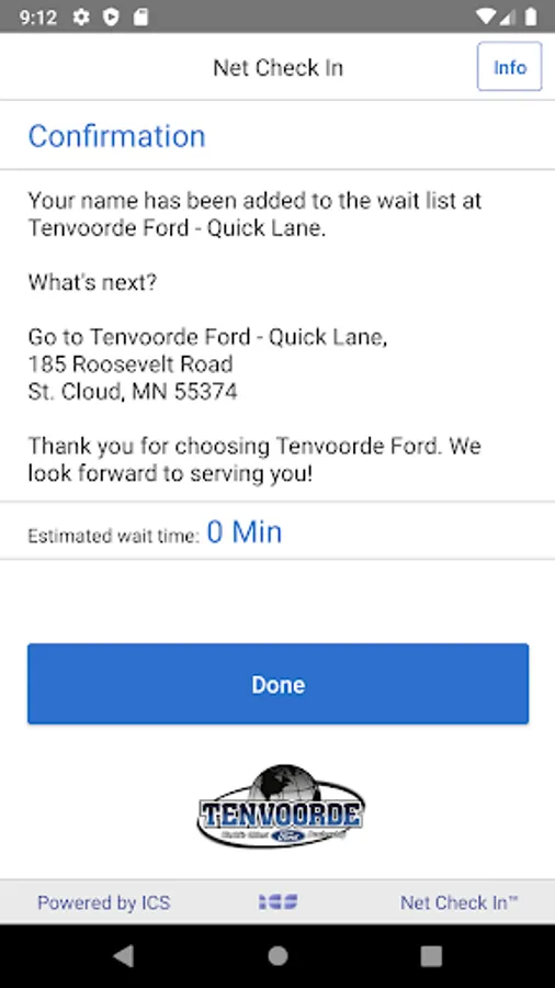 Getting your auto serviced at Tenvoorde Ford Quick Lane is now easier than ever. Let your name wait for you, while you do more important things. Tenvoorde Ford Quick Lane utilizes ICS Net Check In™ to allow you to check in for a service using your phone, tablet or via the web.