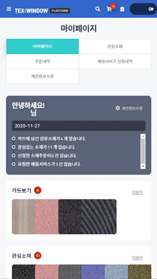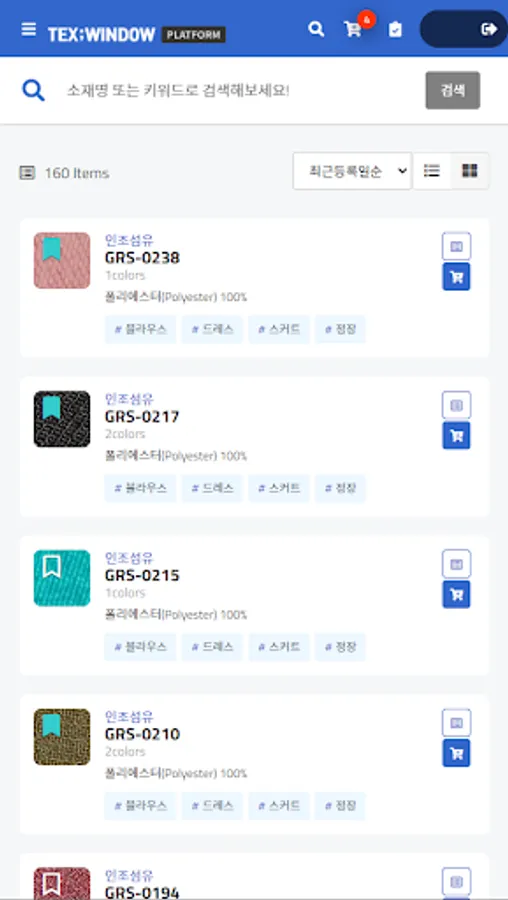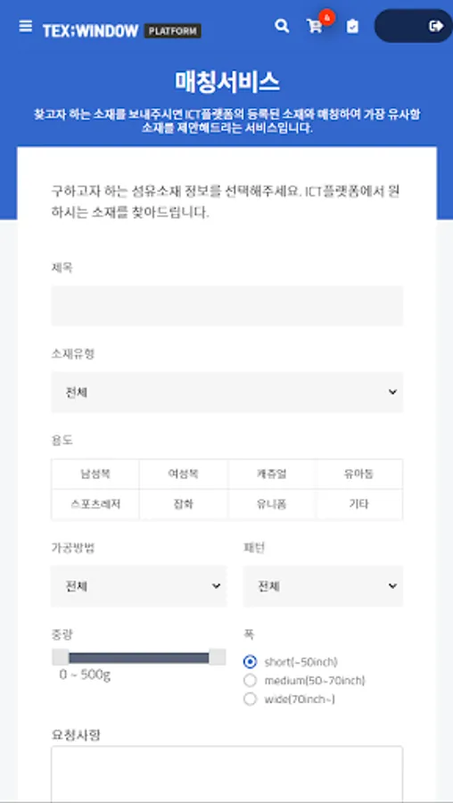 A smart fiber search through detailed search, a fiber comparison that allows you to compare the materials you find with the materials you are interested in at a glance, and a matching service that matches the materials registered on the platform and suggests the most similar materials if you send the materials you want to find. , we provide a promotional service that sets various themes as themes and suggests materials that match the themes.