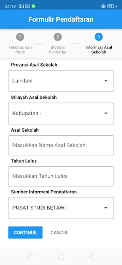 This application was built for the acceptance of new students at UIA Jakarta. The features in this application are: