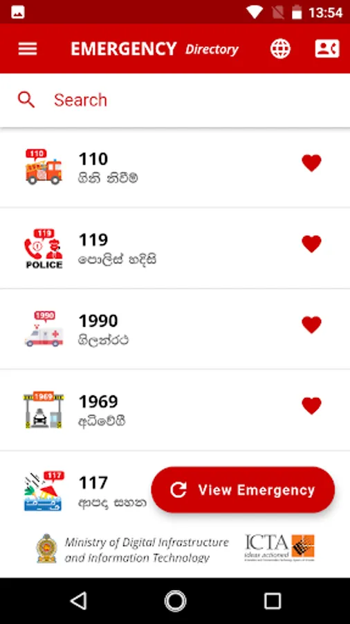 Mobile application for directory of emergency numbers (short code) of key Citizen services of Sri lanka.