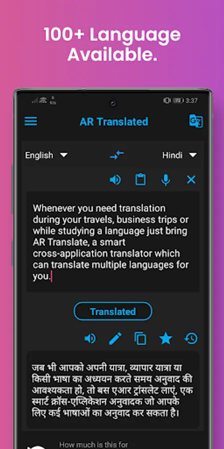 Whenever you need translation during your travels, business trips or while studying a language just bring AR Translate, a smart cross-application translator which can translate multiple languages for you.