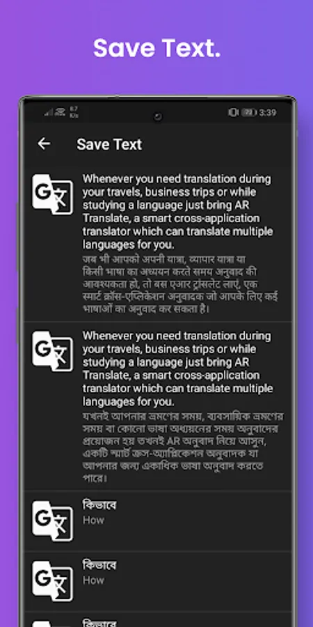 - Save your text with Translate