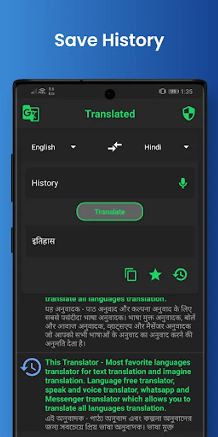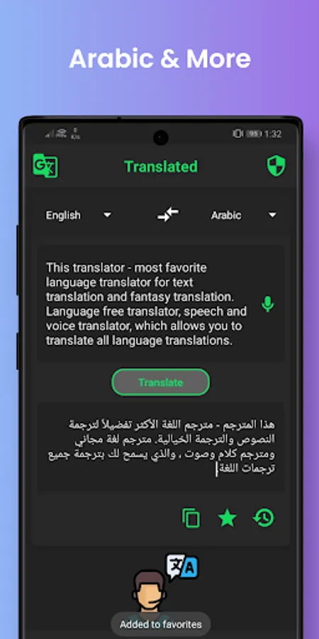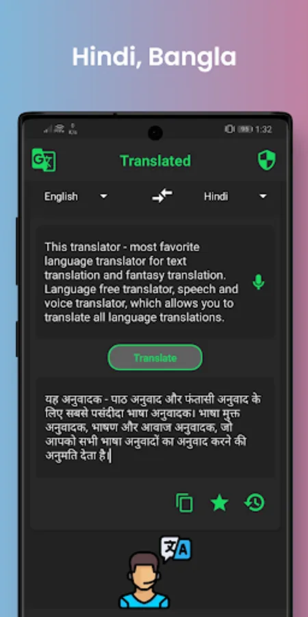 "Hi Translate - Most favorite language translator for text translation and imagine translation. Language free translator, speak and voice translator, whatsapp and Messenger translator which allows you to translate all language like English to Arabic translator and many other.