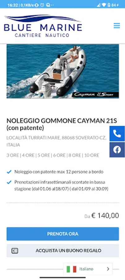 App for the Nautica Blue Marine website. It is possible to make reservations for boats, tours or view the second-hand page.