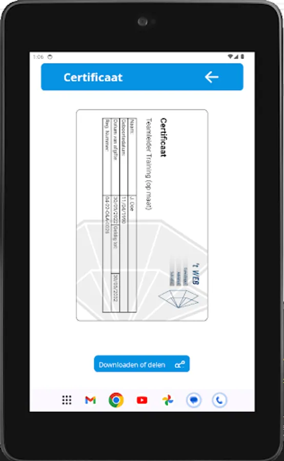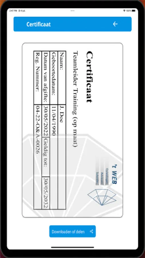 You can view the certificates you have obtained on your phone or download them as a PDF so that you always have them locally on your phone. In addition, the app also offers the option to share your certificates via various channels, such as email or social media. This way you can easily share your obtained certificates with others.
